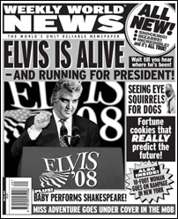 1988--The "Is Elvis Alive?" frenzy reaches a high point as Nashville radio station WYHY offers $1 million to anyone who can produce a living Elvis Presley. The reward is still unclaimed.
